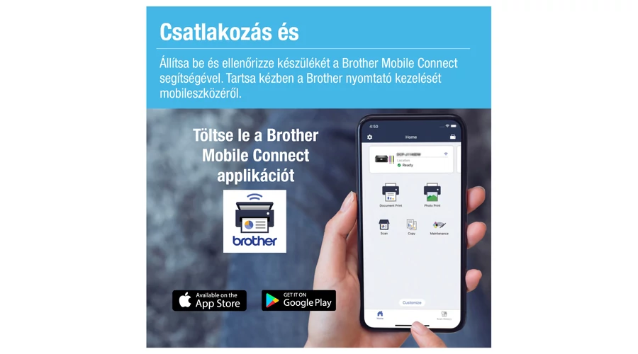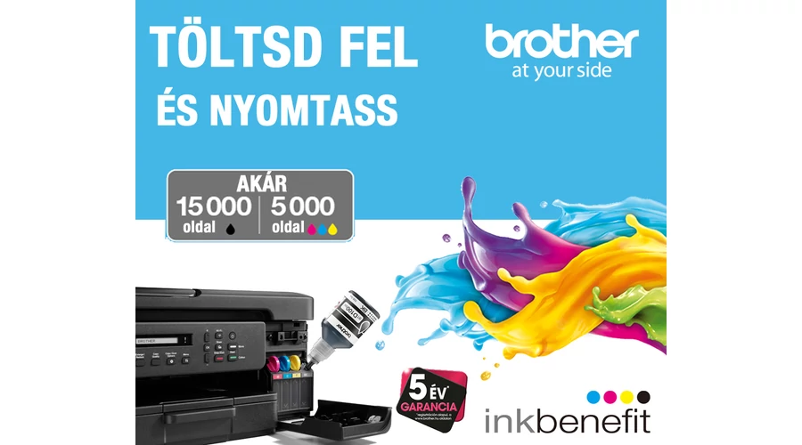 - 2 év garancia (+1 év regisztrációval a Brother Online rendszerében a vásárlástól számított 60 napon belül: https://atyourside.brother.hu/register-your-device)