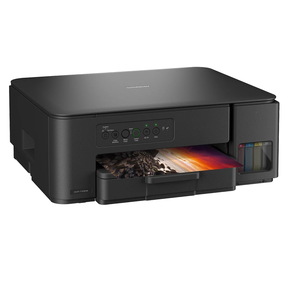 Ren-ge-te-get nyomtatsz színesben? Akkor ezt a nyomtatót neked találták ki! Ez az a nyomtató, fénymásol, szkennel, és persze nyomtat, SZÍNESEN. Ráadásul vezeték nélkül is használhatod. A DCP-T430W dobozában 1x fekete tintatartály (7500 oldalnyi festék), 1x cián tintatartály (5000 oldalnyi festék), 1x magenta tintatartály (5000 oldalnyi festék) és 1x sárga tintatartály (5000 oldalnyi festék) található.